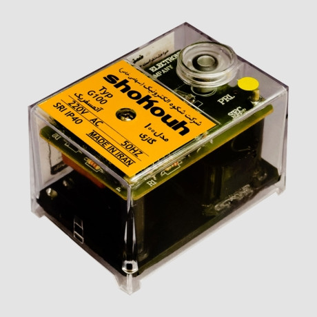 رله کنترل شکوه مدل G100 مناسب برای کنترل (ریست/راهاندازی) مشعل های گازسوز اتمسفریک (بدون فن) بوده و نظارت بر شعله در آن توسط پیلوت انجام میپذیرد. این محصول الکتورنیکی دارای قاب پلی کربنات نسوز و نشکن بوده و همراه با دکمه ریست و پیچ بستن در قیمت بالایی عرضه میشود.قسمت های ولتاژ بالا (High Voltage) در آن توسط رزین عایق گردیده است. این محصول